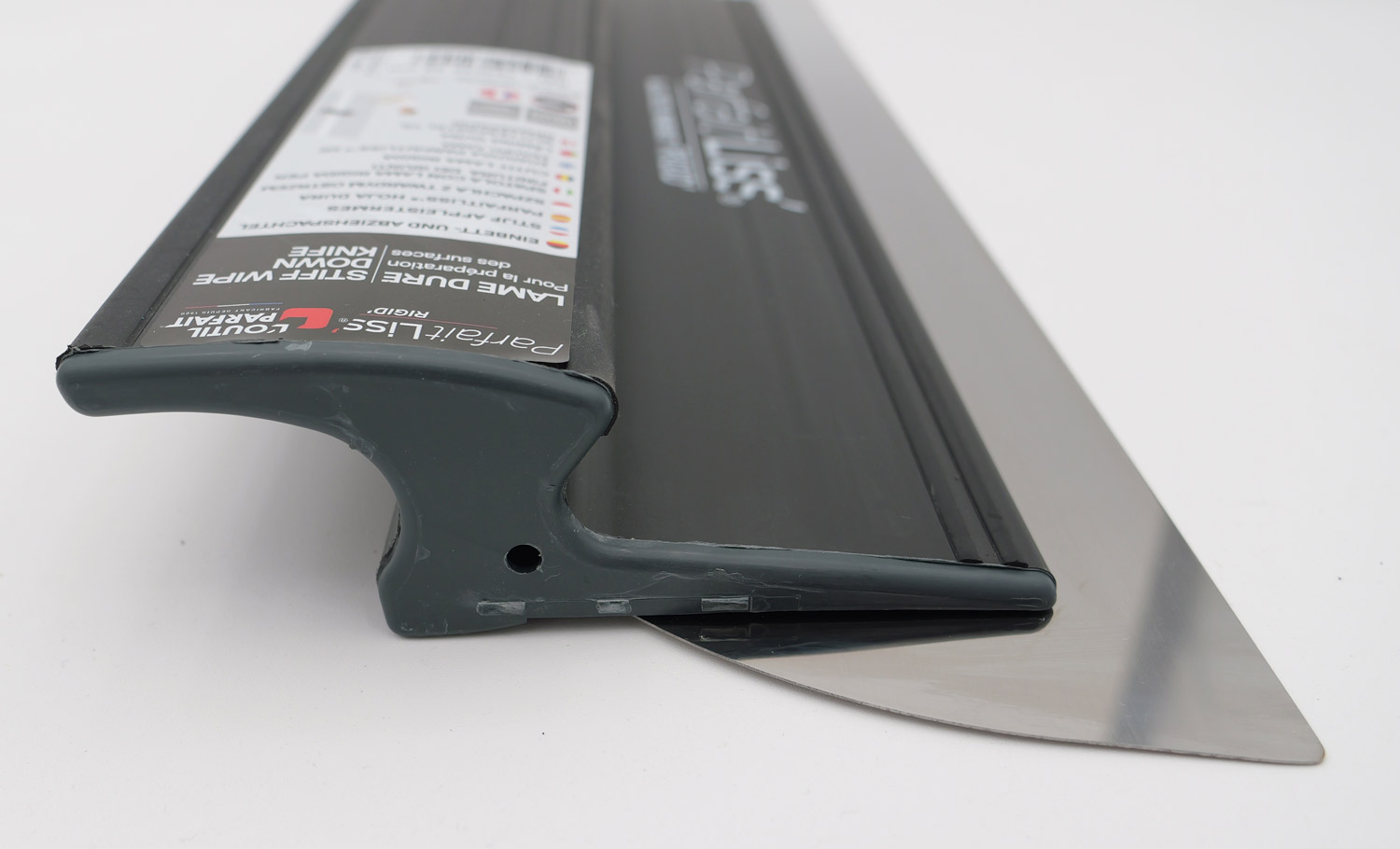 Le ParfaitLiss Rigid possède une lame en inox trempée de 0,5 mm d'épaisseur, adaptée pour appliquer des enduits lourds (enduit garnissant, enduit à projeter...), avec des bords arrondis progressifs anti-trace.